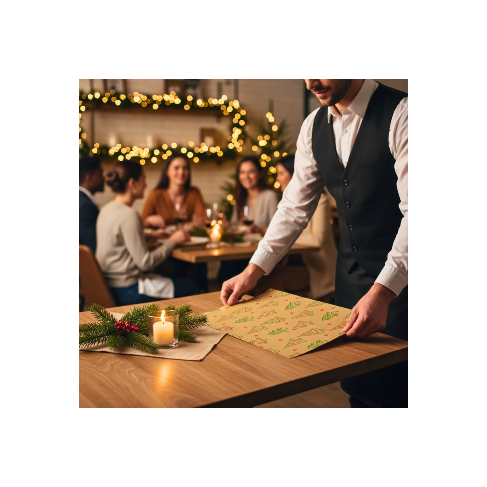 - Cafeterías y bares: Perfectos para mesas de snacks, desayunos o aperitivos con estilo navideño.