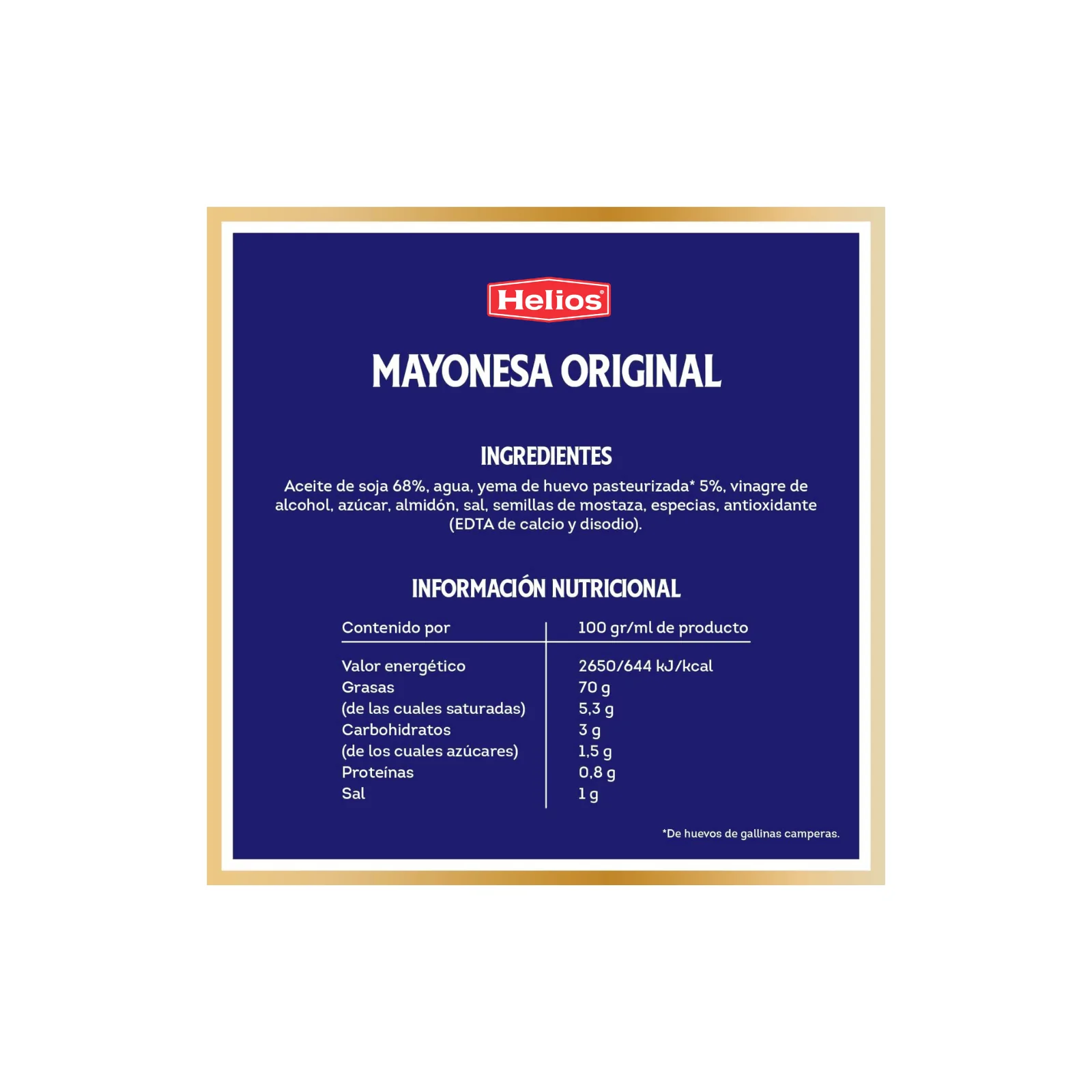 - Alta calidad: La mayonesa Helios es conocida por su textura cremosa y sabor suave, ideal para acompañar una amplia variedad de platos.