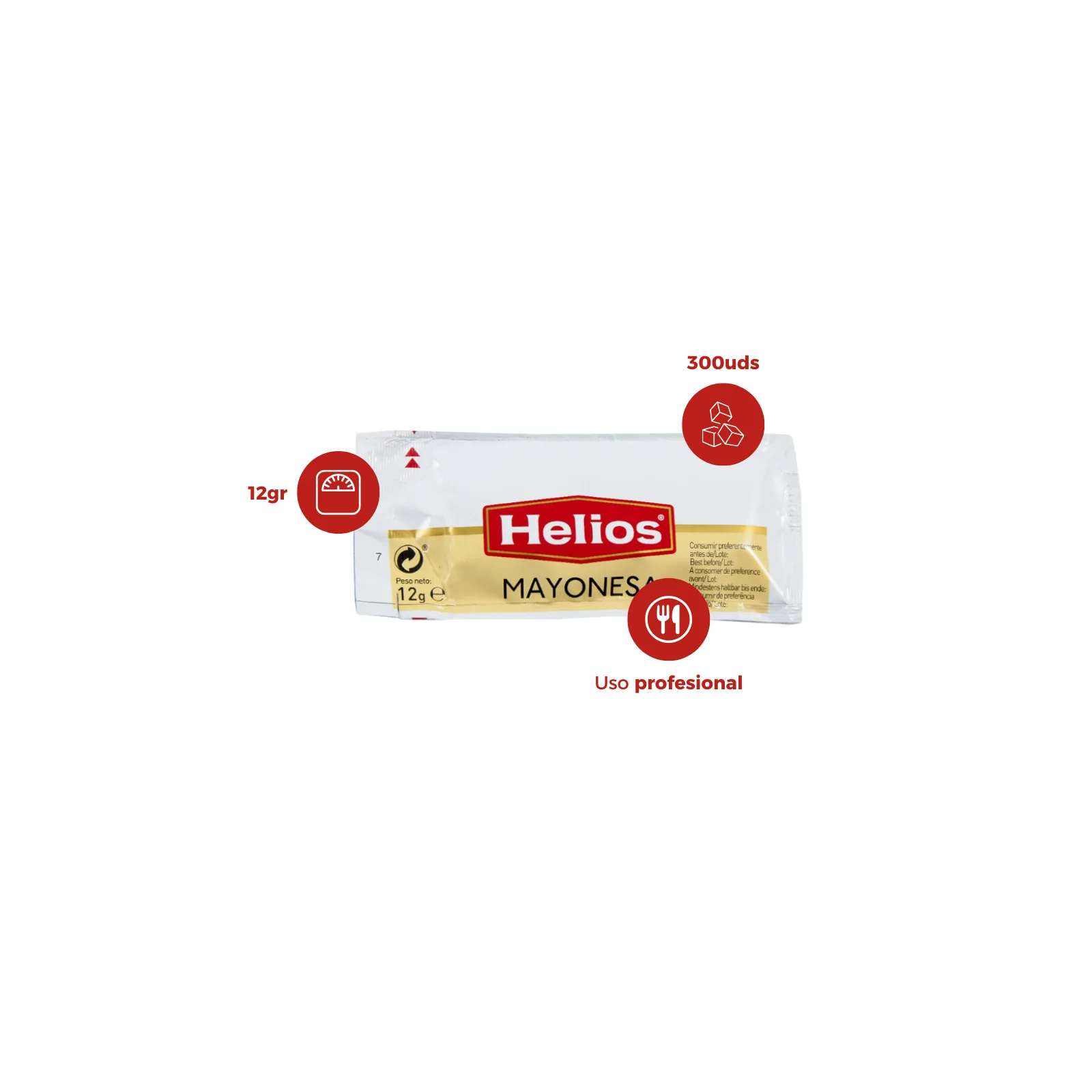 - Sobres individuales: Cada sobre contiene 12 gramos de mayonesa, lo que permite servir la cantidad precisa y evitar desperdicios.